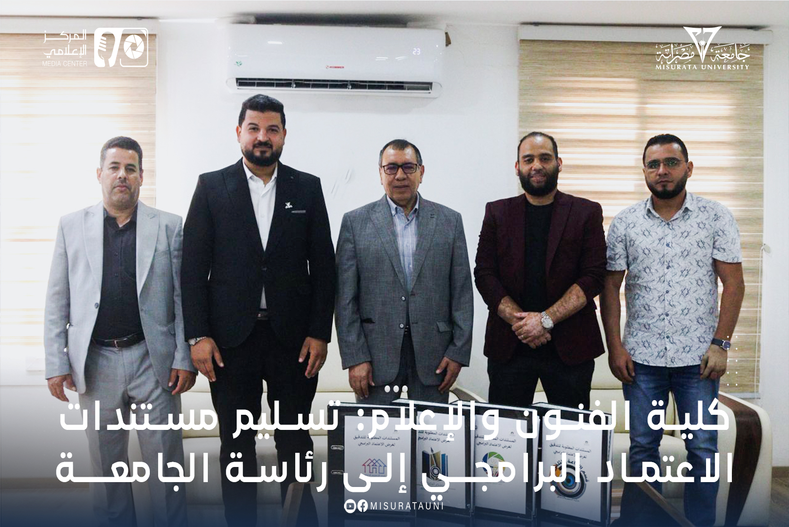 Misurata | September 23, 2025 - The College of Arts and Media at Misurata University submitted its program accreditation documents to the university president on Tuesday during an official meeting dedicated to following up on the colleges` efforts to meet quality and accreditation standards.