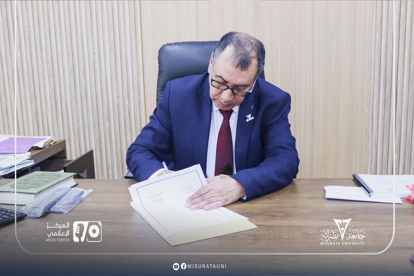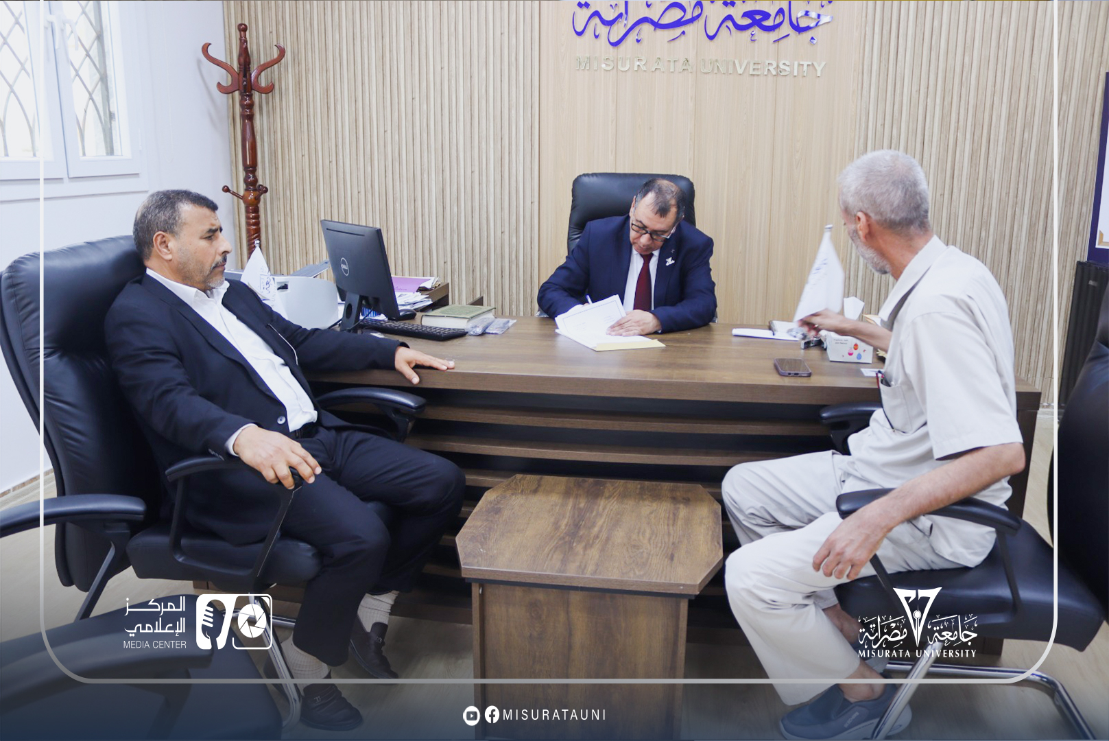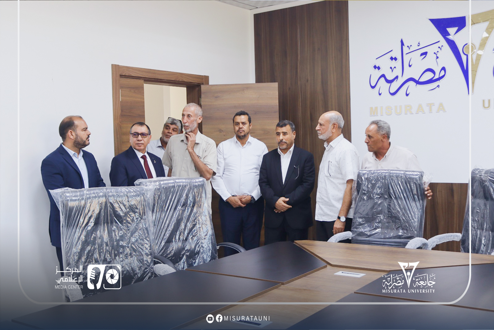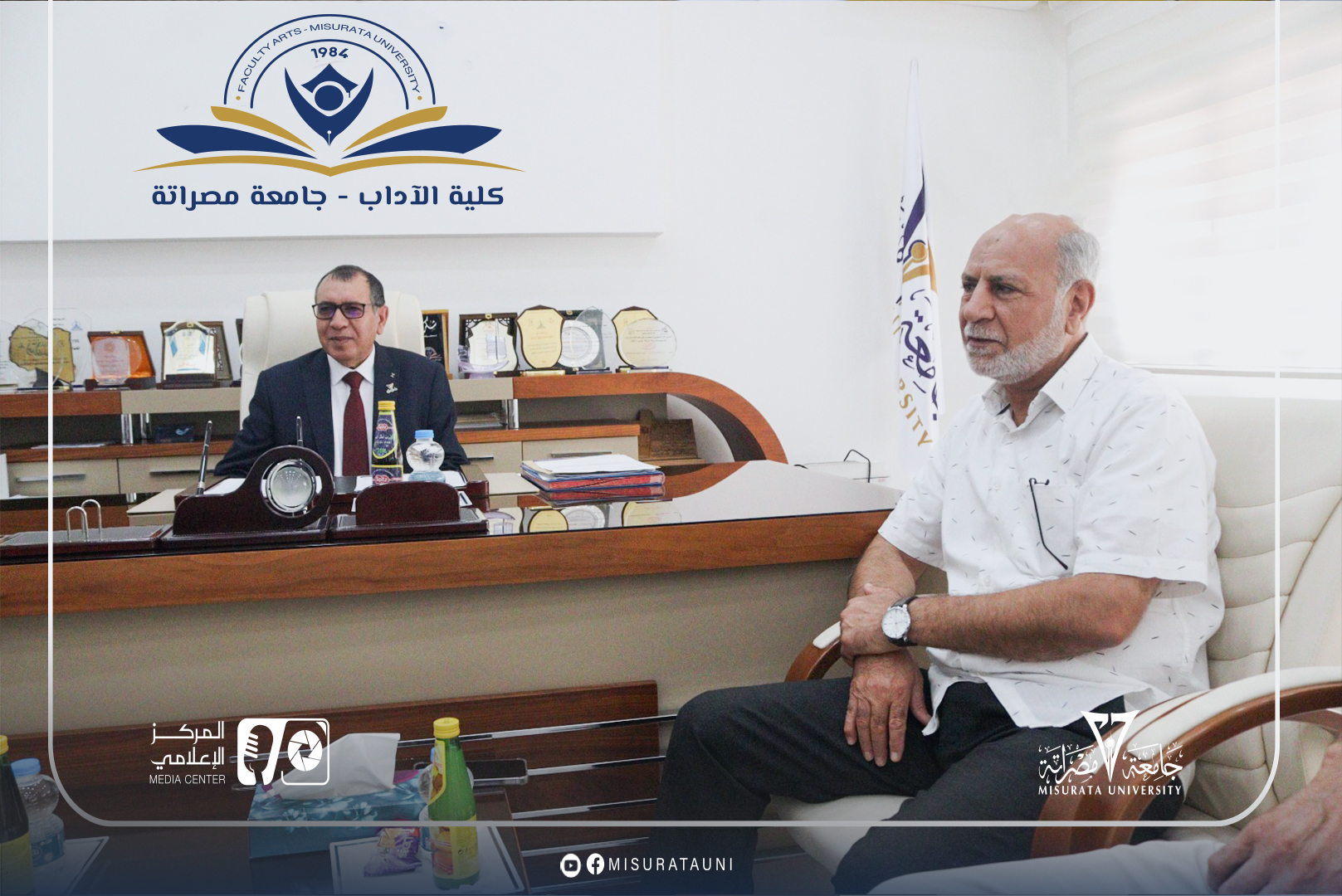 Misurata | Wednesday, September 24, 2025 - The President of Misurata University, Professor Dr. Bashir Abu Bakr Al-Qunaidi, paid an inspection visit to the Faculty of Arts, accompanied by the University`s Vice President for Academic Affairs, Professor Dr. Ibrahim Muhammad Daghman, and Secretary-General, Engineer Ali Abdullah Al-Sariti. He was received by the Dean of the College, the Vice President for Academic Affairs, heads of academic departments, and directors of departments and offices.