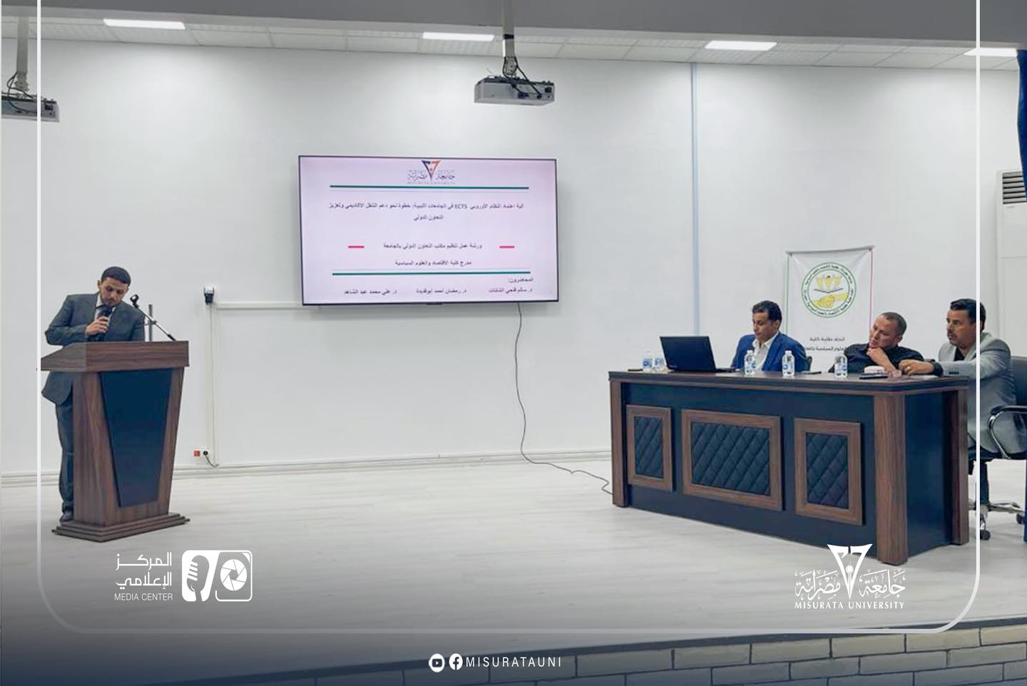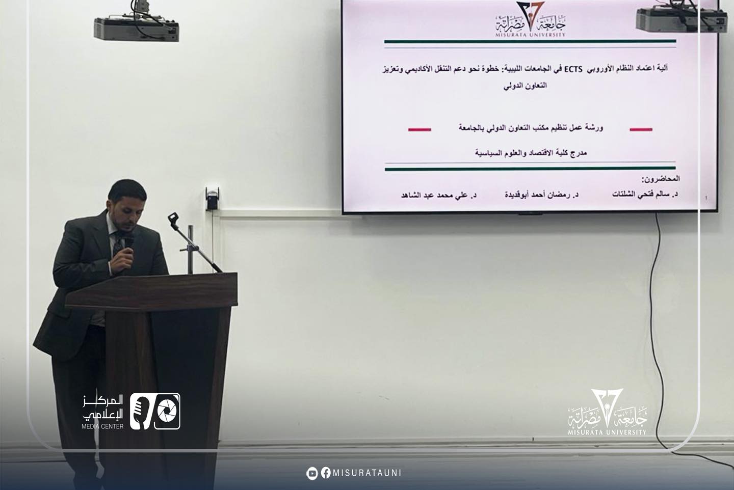 Misurata | Monday, October 27, 2025 - The University`s Office of International Cooperation organized a workshop this morning on the European Credit Transfer and Accumulation System (ECTS), as part of its ongoing efforts to develop the academic system and enhance international cooperation.