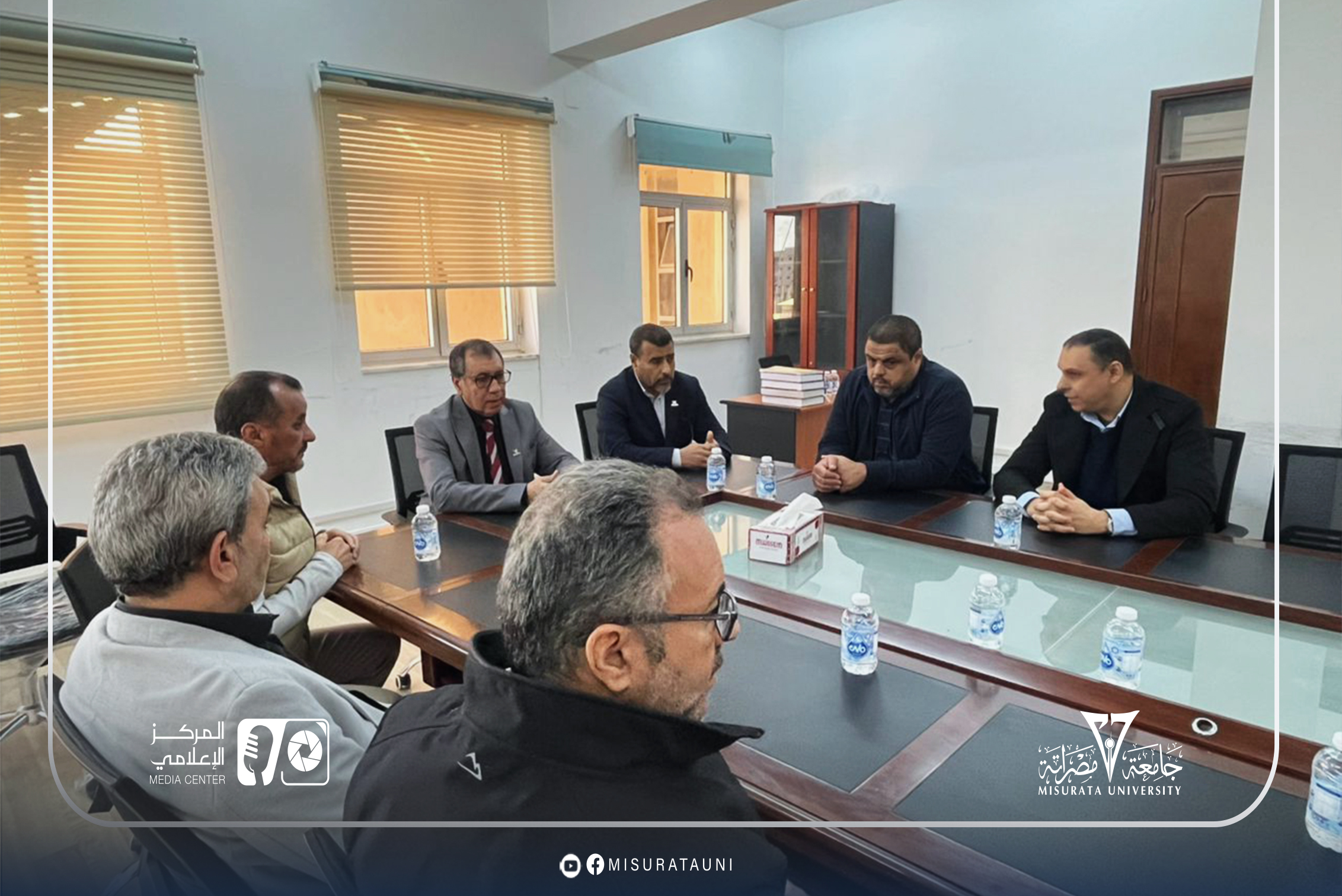 Misrata | Sunday, November 30, 2025 - The President of Misrata University, Professor Dr. Bashir Abu Bakr Al-Qunaidi, made a field visit to the Faculty of Information Technology, accompanied by the Vice President for Scientific Affairs and the Secretary General of the University, to review the progress of the educational process and the level of readiness of the academic infrastructure.