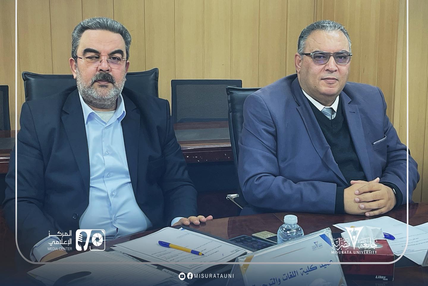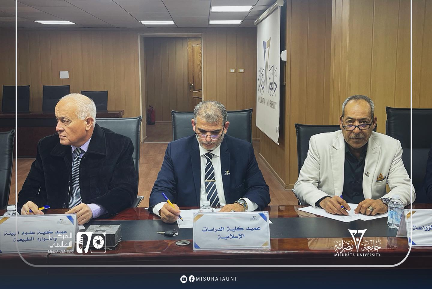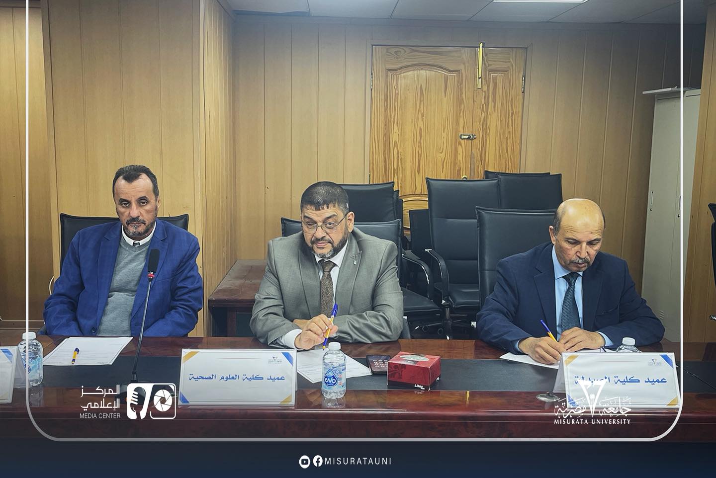 Misrata | Sunday, January 18, 2026 - The Misrata University Council held its first regular meeting for the year 2026 this Sunday afternoon, chaired by the University President, Professor Dr. Bashir Abubakr Al-Qunaidi, and attended by the Vice President for Academic Affairs, the Secretary General, the Registrar General, the Deans of the Faculties, and the Director of the University Council Affairs Office.